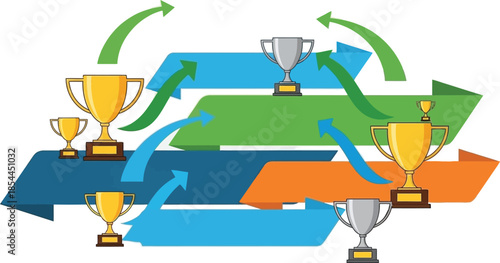 Barber competition logo, emblem set with gold trophy award, hairdresser tools, vector illustration isolated on white background. Barber battle show festival labels.