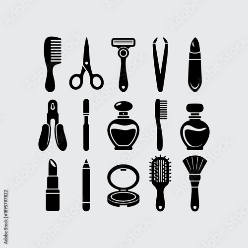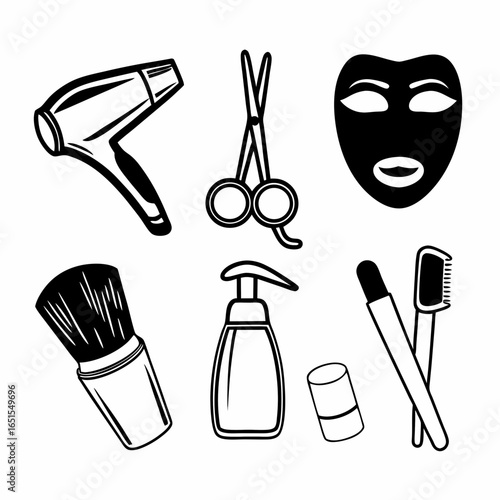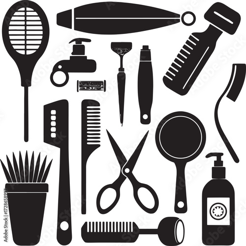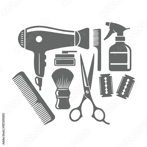 Barber tools set, vector isolated illustration. Mirror, scissors, comb, hairdryer, hair clipper other hairdressing accessories. Barbershop, haircut, beard grooming concept for logo, poster, banner etc