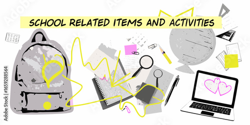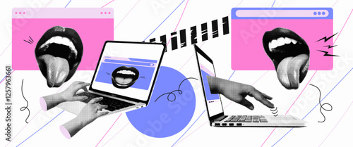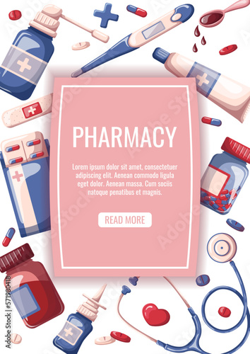Barbershop frame, vector illustration. Realistic mirror, scissors, comb, hairdryer, hair clipper, shave brush, barber pole, other mens grooming tools and copy space.