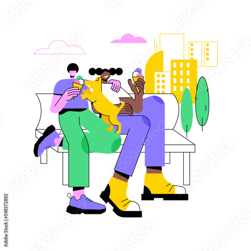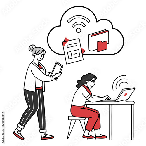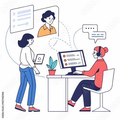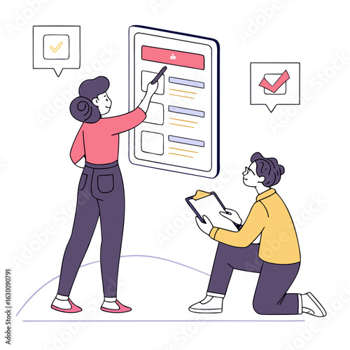 Huge man face and micro male characters with barber tools for beard grooming such as razor, aftershave, shaving brush with foam, scissors, vector illustration. Barbershop concept for website page etc.