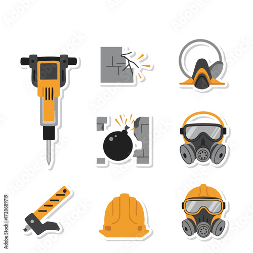 Vector illustration of tiny characters with big barber supplies for beard grooming hair shaving machine, aftershave, shaving brush with foam, scissors. Barbershop concept for web banner etc.