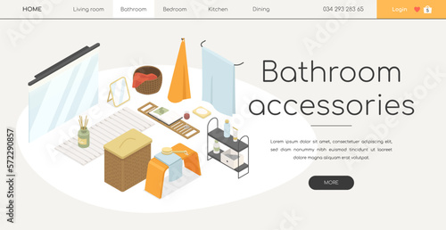 Barbershop landing page template. Vector flat style design concept for barber website and mobile site development. Comb, aftershave, straight razor, shaving brush, hair clipper, scissors, shampoo.
