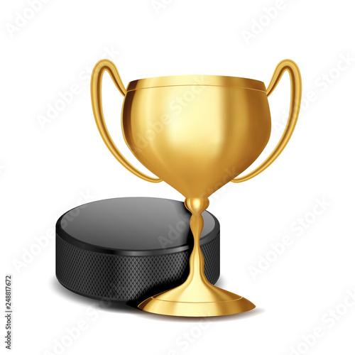 Baseball sport game championship winner award, vector illustration. Realistic gold cup, baseball mitt, helmet, ball and bat on transparent background.