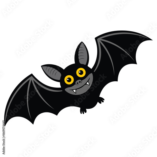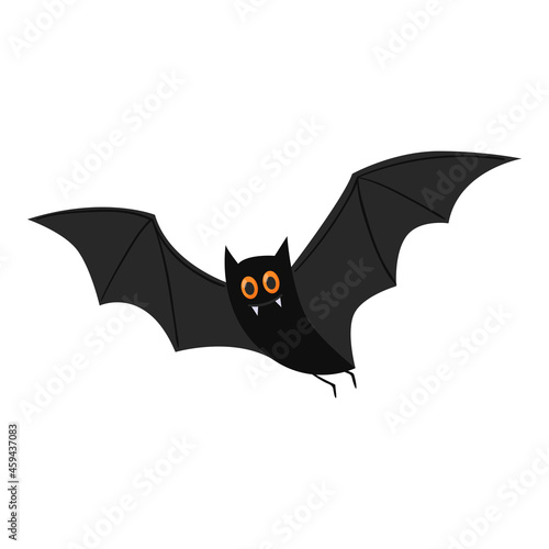 Bat vector. Halloween black vampire cartoon icon. Isolated animal with wing, creepy flying monster on white background