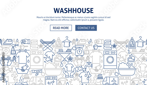 Bathroom advertising vector illustration. Modern thin line art flat style design element with bathroom symbols, icons for website banners and printed materials.