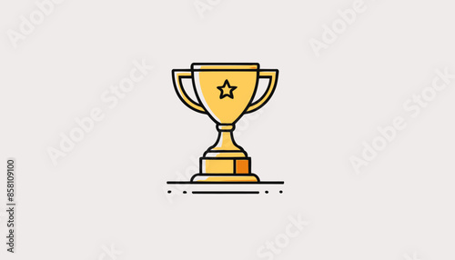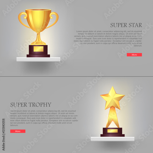 Be a winner poster web banner template. Vector illustration of golden cup standing on white round podium. Competition winner trophy award, championship victory reward.