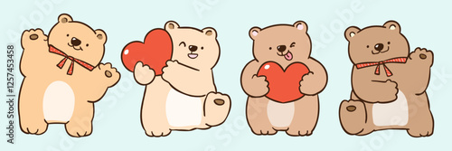 Bear love vector. Cute teddy licking honey. Animal couple icon for valentine greeting card design. Funny loving character illustration isolated on white background