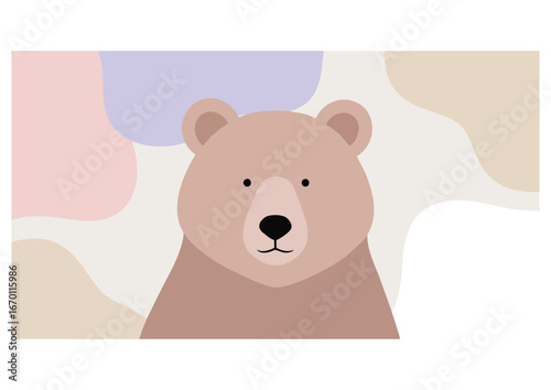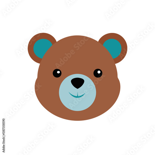 Bear under umbrella from rain cute vector. Happy wild teddy illustration. Funny cartoon autumn character flat icon isolated on white background