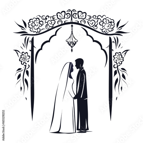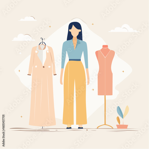 Beautiful muslim woman with shopping bags, flat vector illustration. Young arab girl wearing traditional arabic dress and hijab shopping in retail clothing store, fashion boutique.