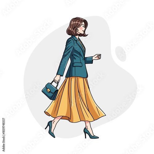 Beautiful woman in dress stay next to car. Comic vector illustration in pop art retro style. Speech bubble.