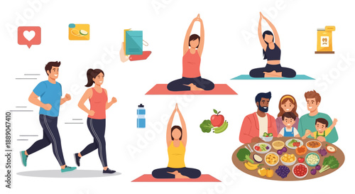 Beautiful woman make up and clean her face. Girl comb hair in front of mirror in bathroom. Skincare daily routine and cosmetic vector poster.