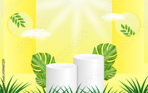 Beauty salon and spa poster, frame template with accessories for skin care procedures. Vector illustration. Spa stones, massage oil, cosmetics, bathrobe and slippers, aroma candles and copy space.