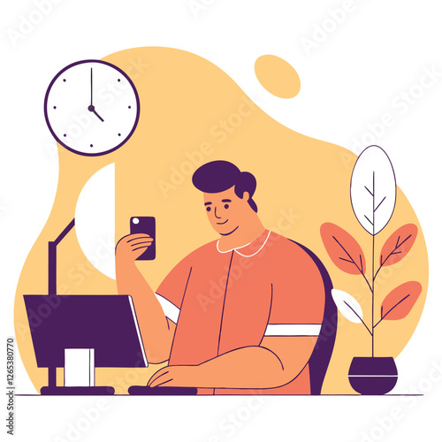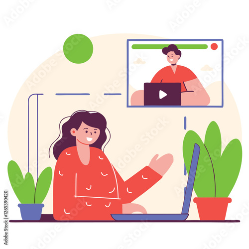 Beauty video blogger recording makeup vlog in her home studio. Female influencer showing cosmetics products in online live stream. Vector illustration with cartoon character. Fashion tutorial,
