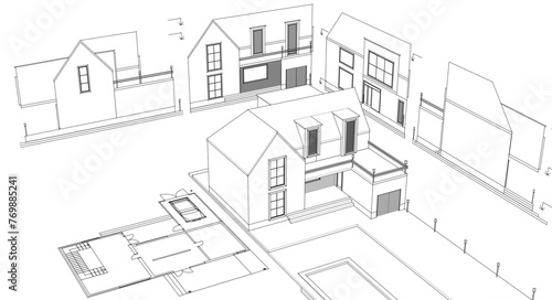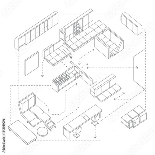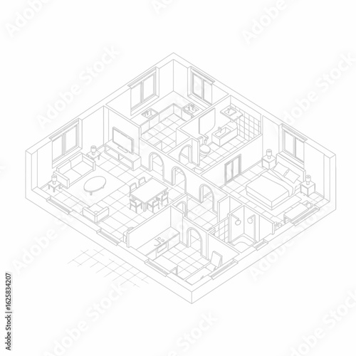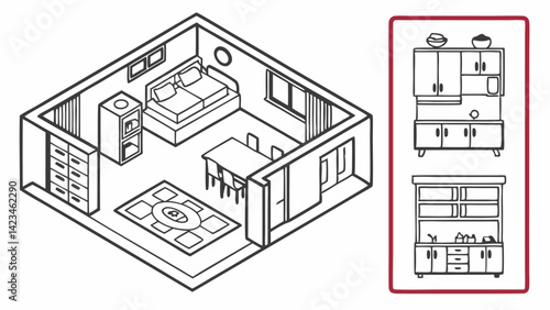 Bedroom interior creator. Vector isometric cutaway empty room and with modern furniture in linear style. Bedroom constructor.