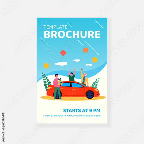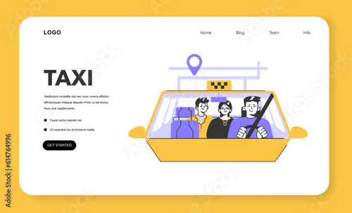 Best family travel vector website template, web page and landing page design for website and mobile site development. Family with two kids and dog traveling by car. Summer vacation concept.