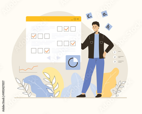 Vector illustration of big smartphone and tiny people woman with megaphone, man with sale sign. Best hotel deals and hotel room promotion concept for web banner, website page.