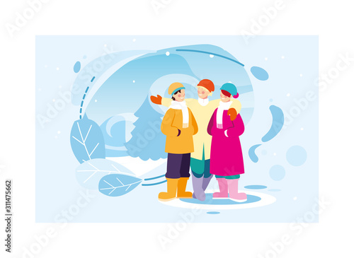 Biathlon concept vector illustration. Winter sports, cross-country skiing with target shooting, skiers male and female flat style design element.