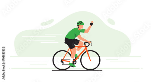 Huge cyclist riding bike and micro characters man giving him big spanner, girl sitting on rear tire fender, vector illustration. Bicycle service, bike repair and maintenance concept for website page.