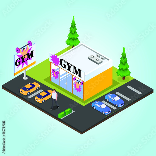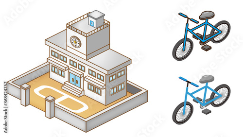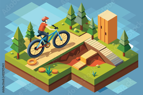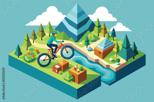 Bicycles for rent and cashier machine for payment, flat vector isometric illustration. Bike rental, city eco transport parking, bike sharing service.