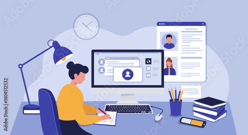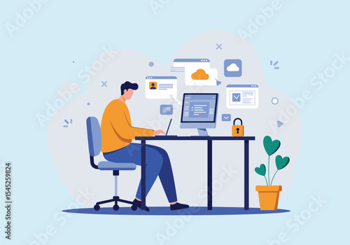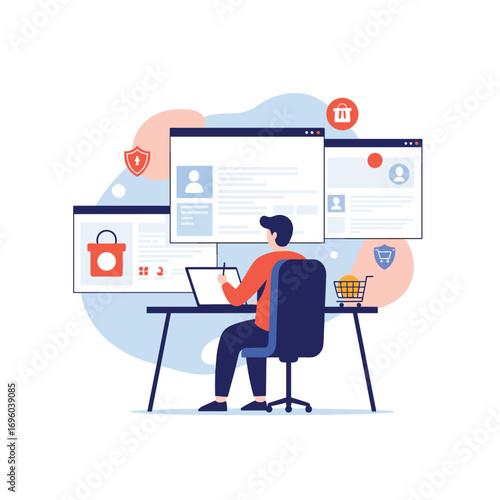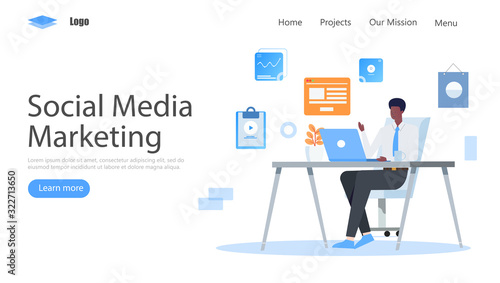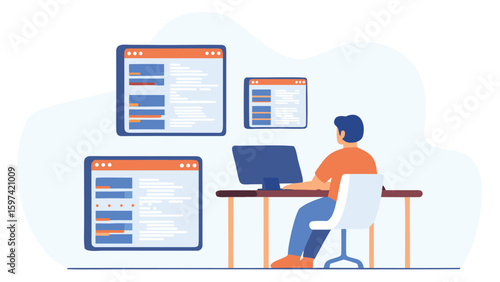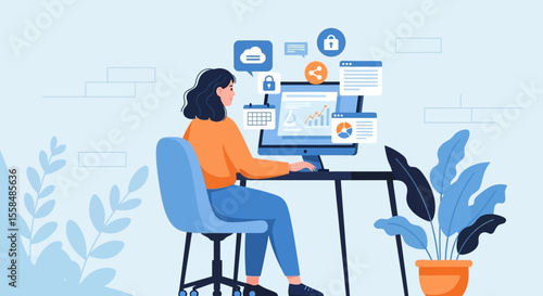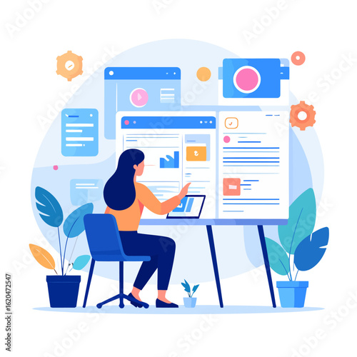 Big data technology for digital profile vector illustration. Big data analysis and forecasting in digital marketing concept with bar pie charts, diagrams, character for web banner, website page, etc.