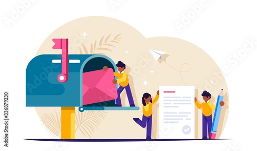 Big sale announcement, woman speaking through megaphone, gift boxes, dollar coins. Vector flat illustration for web banner, website page etc. Special offer discount promotion.