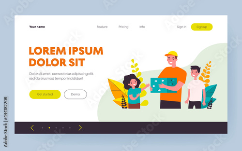 Bingo game vector website template, web page and landing page design for website and mobile site development. Huge balls with lucky numbers, raffle drum and tiny characters lottery winners.
