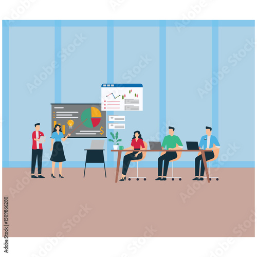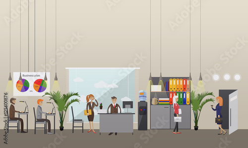 Biology concept vector illustration in flat style. Biological laboratory interior. Biologists carrying out research using laboratory glassware and equipment.