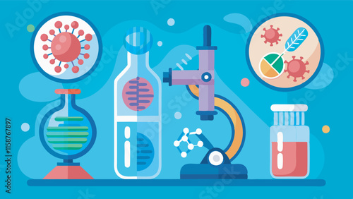 Biology science education concept vector poster in flat style design. Biology school laboratory equipment.
