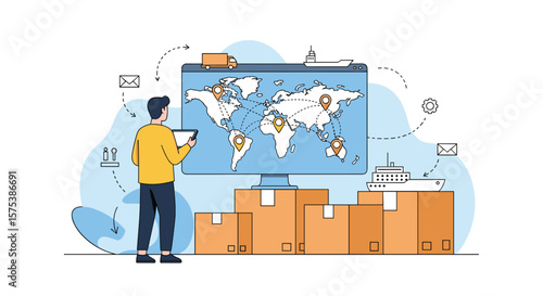 Vector illustration of biologists using modern technologies while working at scientific laboratory. Biology concept for web banner, website page, presentation etc.
