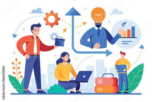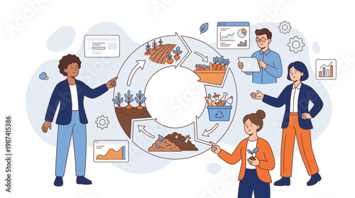 Biotech typography banner template, vector flat illustration. Scientists testing DNA, examining cell cultures and splicing genes. Biotechnology, genetic engineering, genetic modification technology.