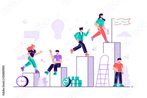 Biotechnology, vector flat illustration. Group of scientists, lab technicians wearing white coats testing DNA, examining cell cultures and splicing genes. Biotechnology laboratory concept.