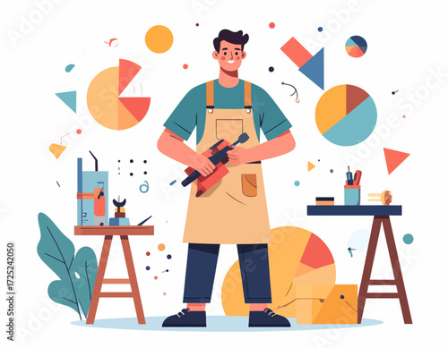 Tiny characters packing birthday cake into big box, vector illustration. Bakery, birthday planning, confectionery composition for web banner, website page etc.