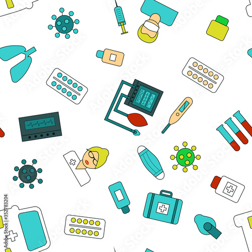 Bitcoin mining seamless pattern. Vector modern thin line flat style design with cryptocurrency mining icons and symbols.