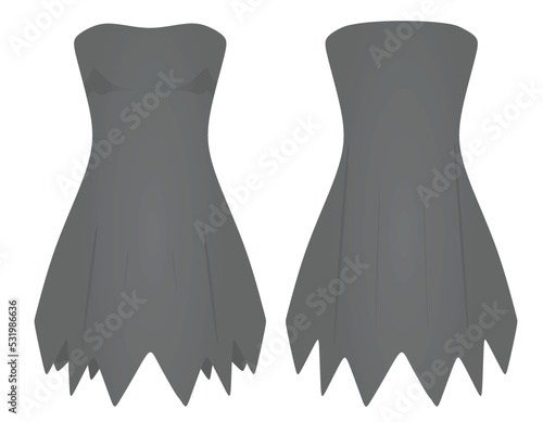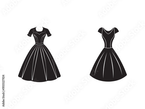 Black and white fluffy dress mockup set, vector illustration isolated on transparent background. Realistic women little cocktail dresses. Ladies clothing and fashion.