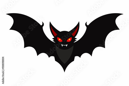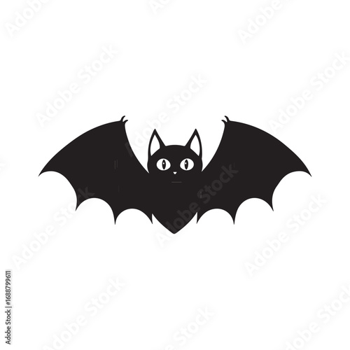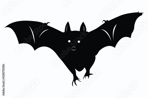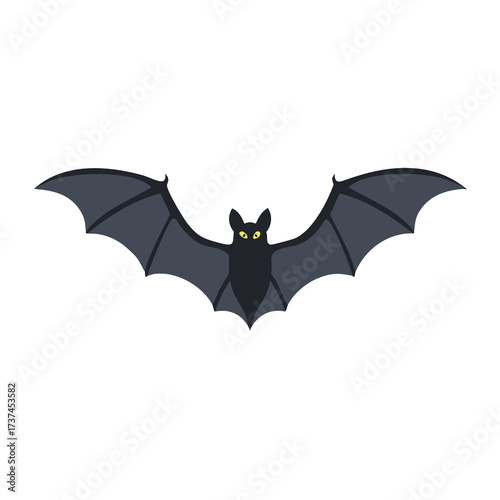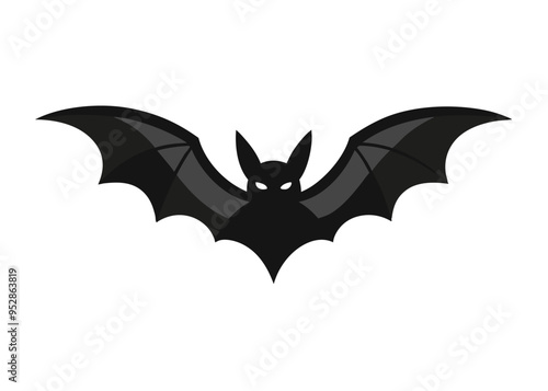 Black bat flying vector. Spooky black animal creature character, scary night monster isolated on white background