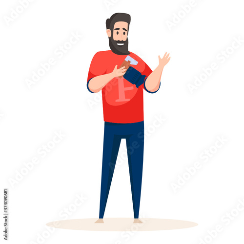 Blacksmith character wearing in apron standing with hammer on belt vector illustration. Foundry workshop worker isolated on white background