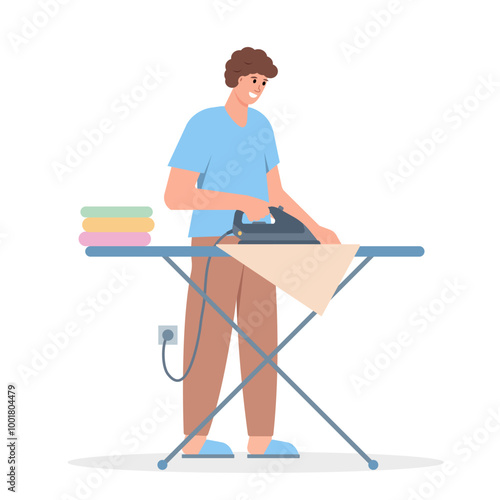 Blacksmith medieval master character wearing apron sharpening sword on grind stone wheel at workshop vector illustration isolated on white background