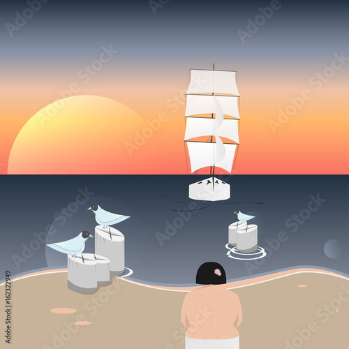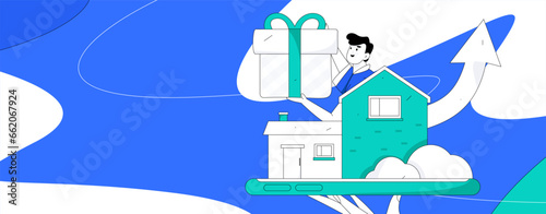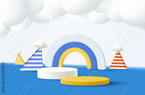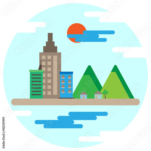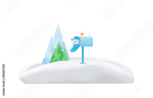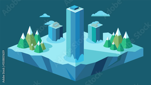 Blank drink water plastic bottle, paper cut mountains, forest trees, vector illustration. Clean drinking water ads template.