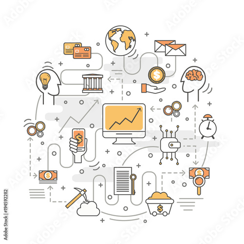 Blockchain technology seamless pattern, vector modern thin line flat design.