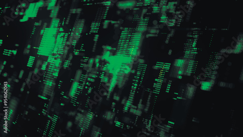 Vector polygonal art style iron chains. Low poly wireframe mesh with scattered particles and light effects on dark blue background. Blockchain technology poster banner design template with copy space.