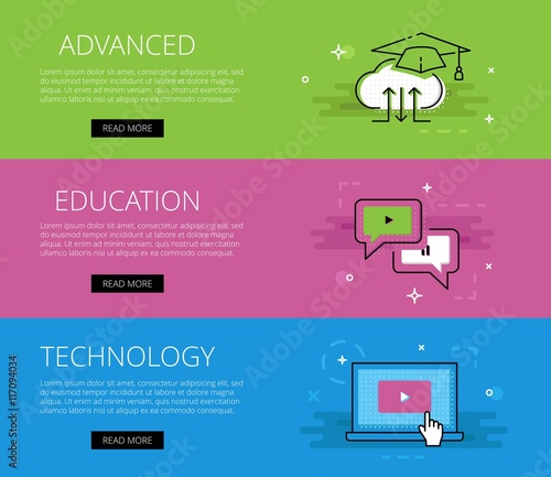 Vector set of horizontal banners with Blockchain, Profit, Innovations concept modern thin line flat design elements, web templates.