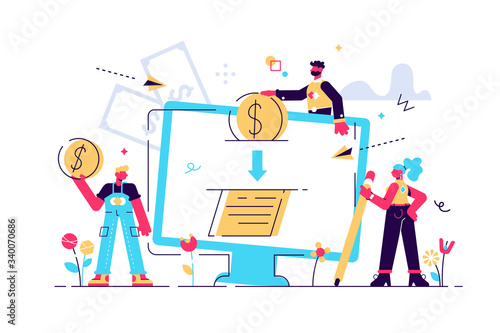 Blood donation concept vector illustration. Donor male character giving his blood to save life and receiving gratitude red heart in return.