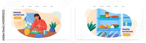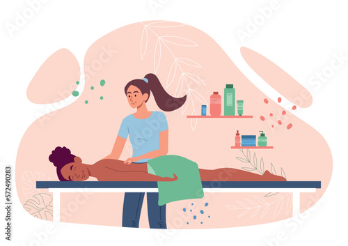 Body care landing page design, website banner template set, flat vector illustration. Woman enjoying spa salon procedures. Hot stone massage therapy, body treatment.