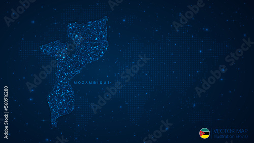 Vector polygonal art style bodybuilder showing his muscles. Low poly wireframe mesh with scattered particles and light effects on dark blue background. Sport poster banner template with copy space.
