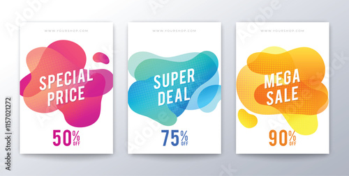 Bonus program, earn points label banner vector set. Trendy gradient dynamic liquid abstract shapes of various colors with text. Customer reward bonus points loyalty program concept for web banner etc.