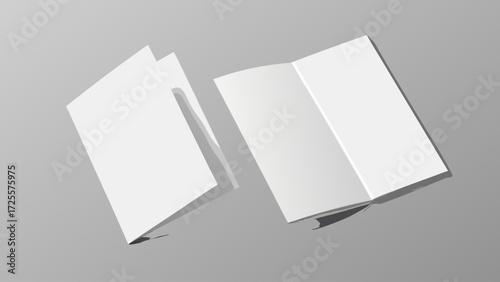 Realistic book mockup set, vector isolated illustration. White blank booklet, brochure, magazine cover. Hardcover, softcover or paperback book templates.
