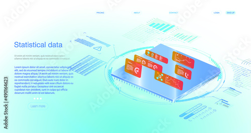 Books online landing page website template. Vector isometric illustration of man taking book from bookshelf in smartphone store. Online digital library concept.