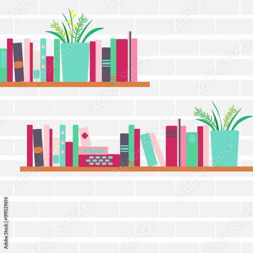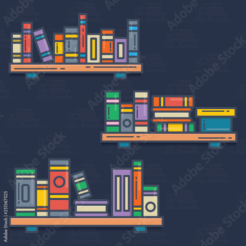 Bookshelves with vintage books vector icon isolated on white background