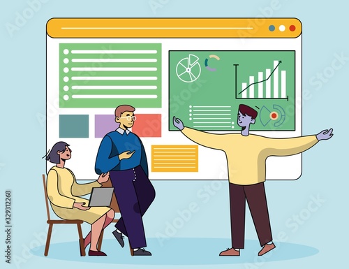 Vector illustration of businessman in private office. Modern office interior. Boss concept design element in flat style.