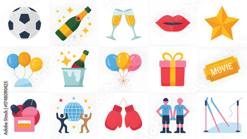 Bowling tournament award set, vector illustration isolated on white background. Bowling game winner reward compositions with gold cup, ribbon, ball and pins.